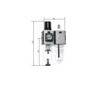 *Standard series, please use in preference, as the regulation range is universally applicable, **as soon as the inlet pressure falls below the minimum input pressure, the drain valve opens automatically. The semi-automatic drain valve can be prevented from opening by screwing the drain screw tight, ***installation of a standard pressure gauge only possible with a pressure gauge adapter, display range of the compact pressure gauge: 0 to 12 bar, or 0 to 6 bar