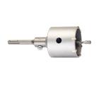 Description: Hammer-resistant impact core cutters with 6 hard metal cutters, complete with shaft and centring drill