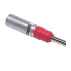 Nozzle for connecting to CEJN blow guns with extension pipe (type BLPVLC ... ). Energy saving due to lateral air intake. This reduces the required compressed air by approx. 25%. As soon as the distance between the nozzle and the surface becomes too small, the bypass reduces the pressure to less than 2 bar. The air then escapes though the lateral side.