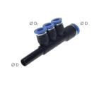 T multiple distributor with push-in nipple and 3 outlets, standard