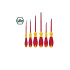SDREHE SPH SET6i: Wiha-VDE-screwdriver -SoftFinish- with ergonomic (round) multiple-component handle with roll-away protection, identification of the handle with profile size. Additional individual insulation tested in accordance with DIN EN 60900 (IEC 60900: 2004) for guaranteed safe work at a voltage of up to 1000 volt.