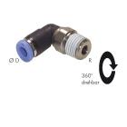 Functional principle: The swivel joints (with a ball bearing) prevent the hose from getting twisted during swiveling movements.