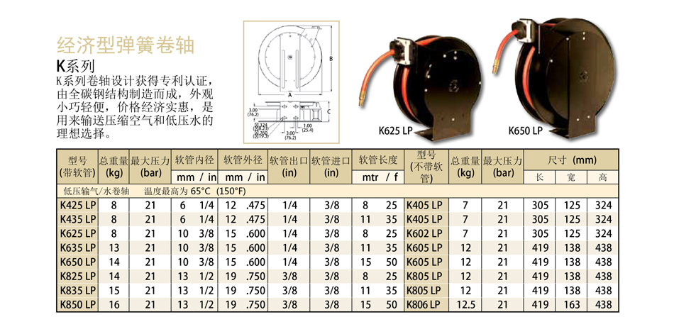 经济型弹簧卷轴;工业弹簧卷轴;K625 LP卷轴